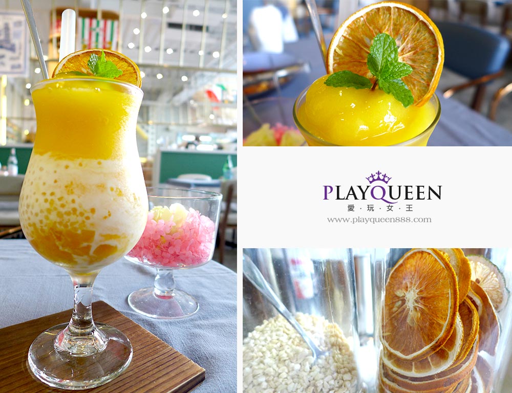 以芒果冰沙、香橙、椰漿調製而成