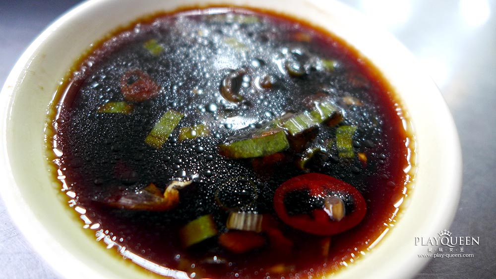 郭家水餃的獨門醬汁,看起來似乎很辣,但其實一點也不辣,所以不吃辣的請安心食用吧~