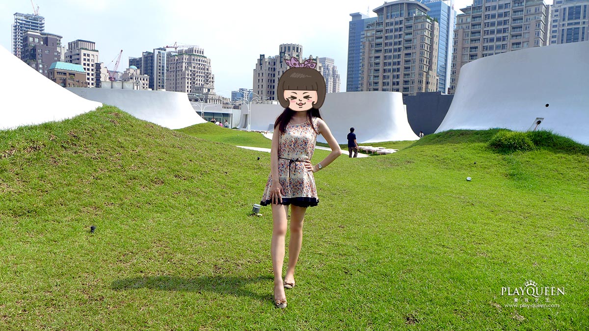 看這翠綠的草地與弧形的建築